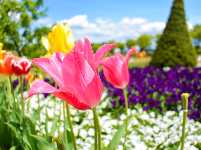 春になると、赤・白・桃色の花々が一斉に咲き誇り