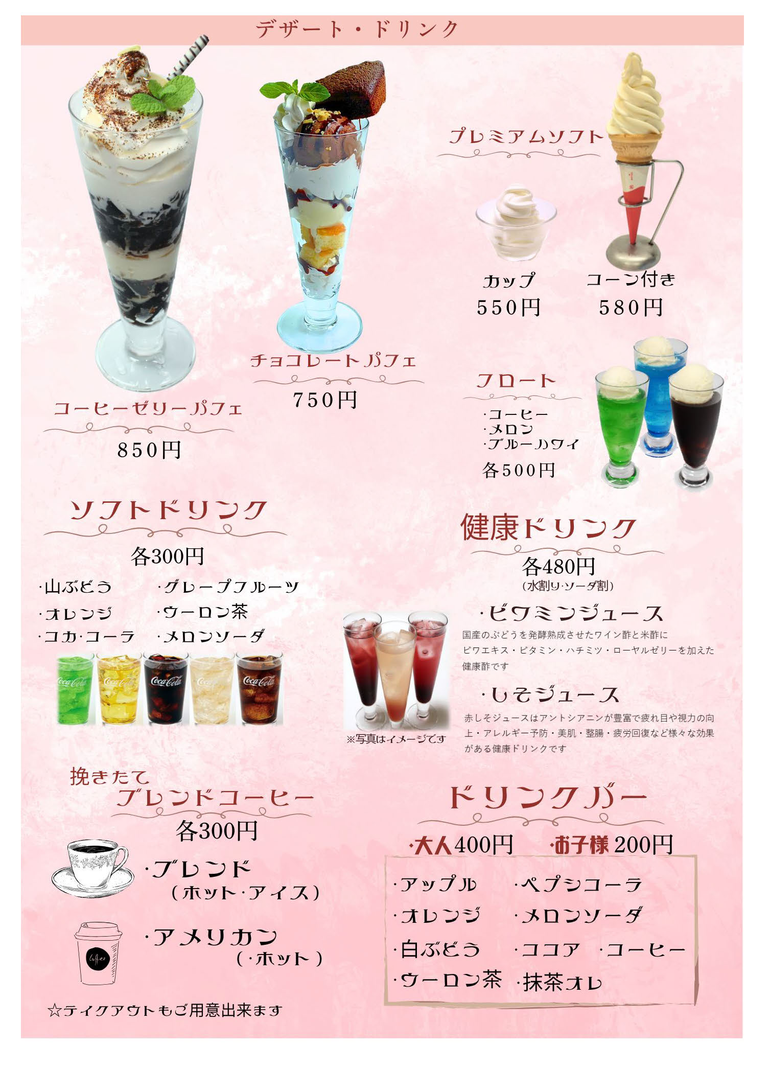 - 巨峰ゼリーパフェ800円巨峰サンデー 600円巨峰ソフトクリーム450円