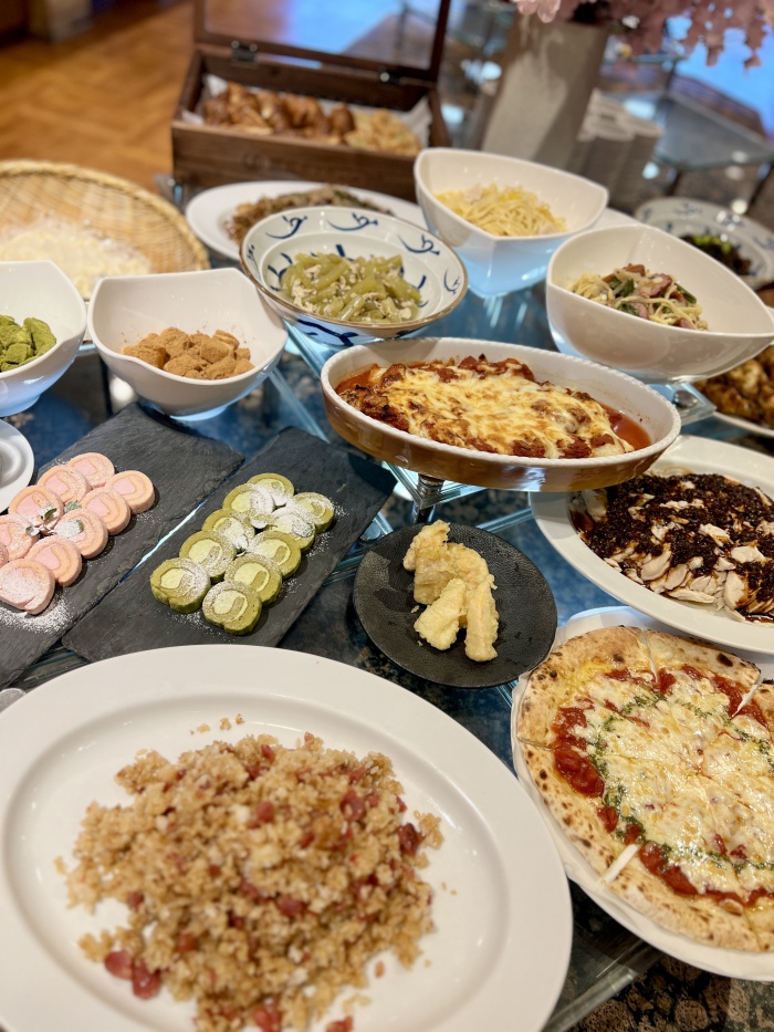 ランチでは、旬のたけのこの天婦羅や鶏の天婦羅、ふきと湯葉の含め煮を始め、山菜を使った冷製パスタ・ロールキャベツのチーズ焼きなどの春らしいメニューがたくさん登場!デザートコーナーにはイチゴのロールケーキやわらび餅、桜餅味のアイスなどもご用意しております!