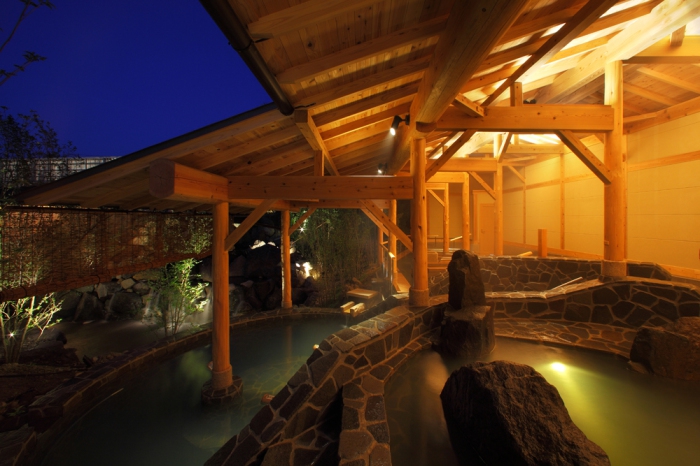 飯坂の源泉をめぐる広々大浴場 「花ももの湯」 は点在するそれぞれの湯舟で異なる入浴スタイル特徴です。 日々の疲れやストレスが溜まった身体をの~んびりと癒してください