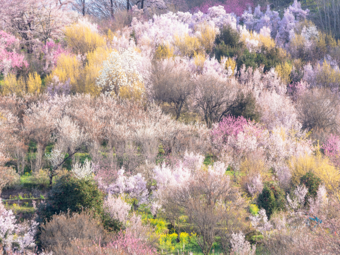 春になると、梅・桃・桜をはじめとする多彩な花々がいっせいに咲き誇り
